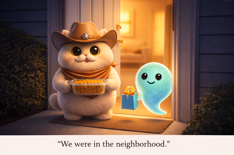 presenceA cowboy cat and a tiny ghost doing things that required patience, presence, and absolutely no Wi-Fi.